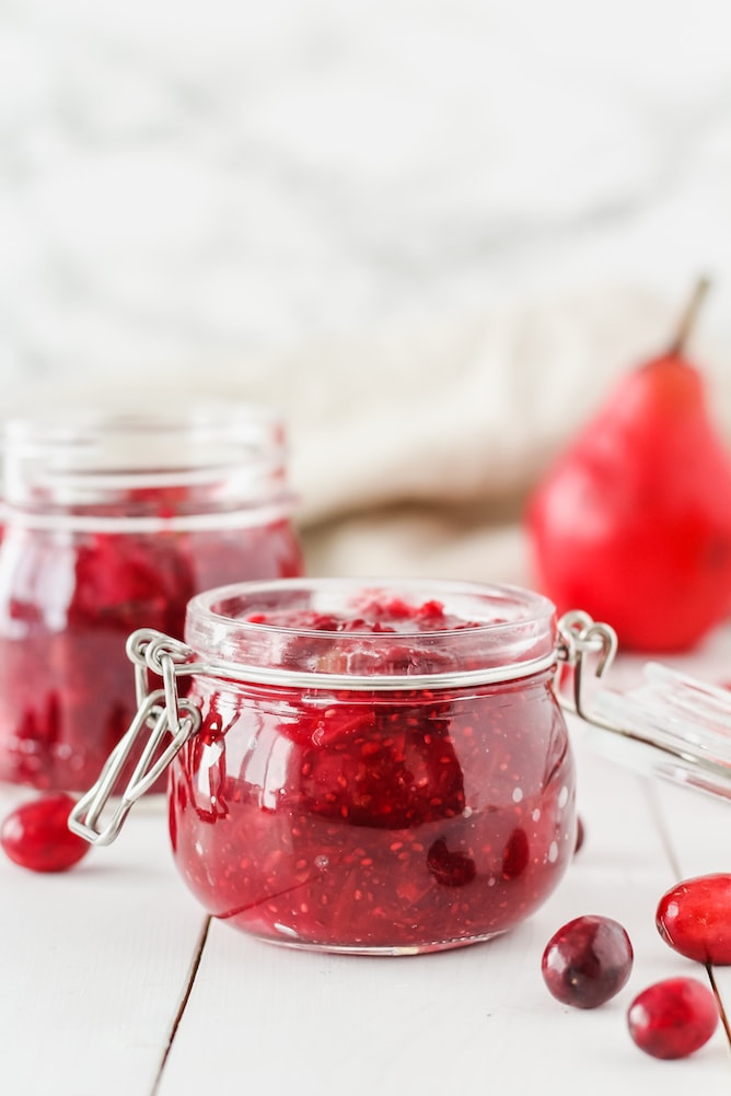 Cranberry Pear Chia Seed Jam (for all your cheeseboard needs and makes a great gift!)