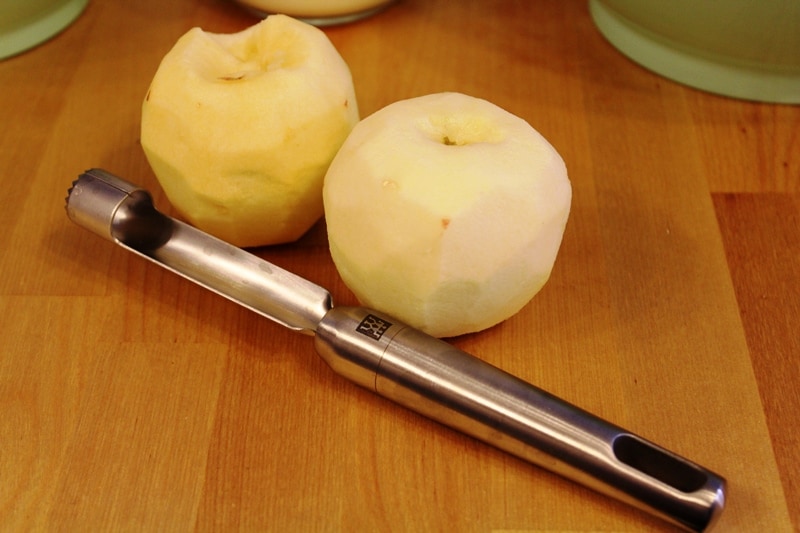 Next up are the apples. Peel and core the apples.