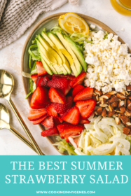What I love about this strawberry summer salad is I can either serve it as a main dish with extra protein like salmon, chicken, or a white bean like cannellini beans. Or, I can serve it as a side dish for a crowd.