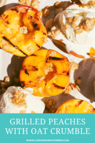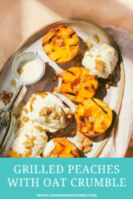 Grilling a stone fruit like peaches is a great way to enjoy this delicious summer fruit. When those fresh summer peaches come off the grill grates, drizzle them generously with honey or maple syrup, then serve immediately with ice cream and don’t forget the oat crumble!